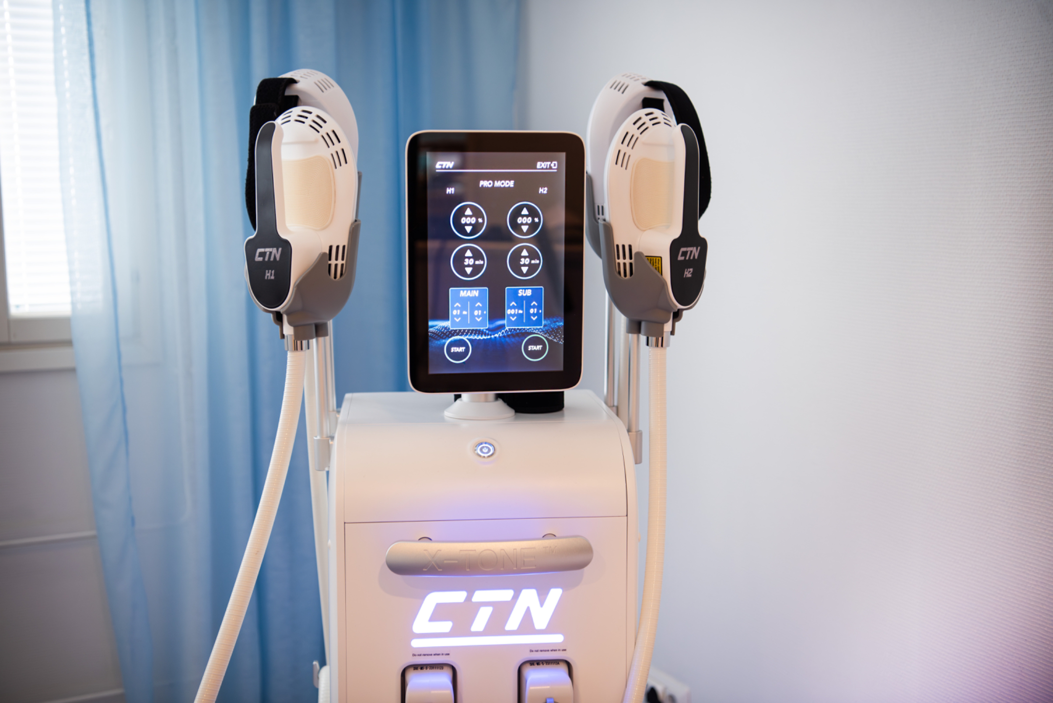 X-Tone lihasstimulaatio aktivoi lihakset sähköimpulssien avulla, supistaen niitä syvemmin kuin tavallinen treeni. Hoito kiinteyttää, vahvistaa ja elvyttää lihaksia ilman ylimääräistä rasitusta nivelille. Tulokset tuntuvat nopeasti, ja laitetta voidaan käyttää sekä muokkaukseen että palautumiseen.